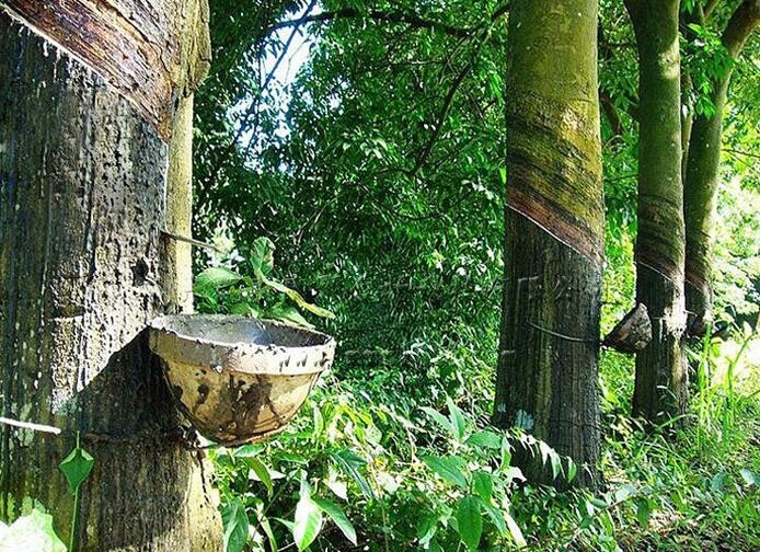 天然橡膠是用從橡膠樹上采集的樹膠,經(jīng)過過濾、凝固制成。一般在樹齡5-7年的橡膠樹皮上傾斜切口后采得,橡膠樹一般可采集25-30年。橡膠樹生長(zhǎng)需高溫多雨的環(huán)境,在年平均氣溫26-32℃之間、年平均降雨量在2000mm以上的熱帶地區(qū)栽培,因此其產(chǎn)地分布于南北緯10°以內(nèi),多集中在東南亞地區(qū)。由于天然橡膠是采自于多年生木本植物橡膠樹,雖整年都可采膠液,但其產(chǎn)量隨季節(jié)性而變動(dòng)。因此不能在短期內(nèi)調(diào)整供應(yīng),市場(chǎng)變化周期較長(zhǎng),但又因其本身的重要性,對(duì)世界經(jīng)濟(jì)及重大政治事件有著強(qiáng)烈的反應(yīng),所以人們開發(fā)出化學(xué)方法的合成橡膠來滿足生產(chǎn)生活的需求。